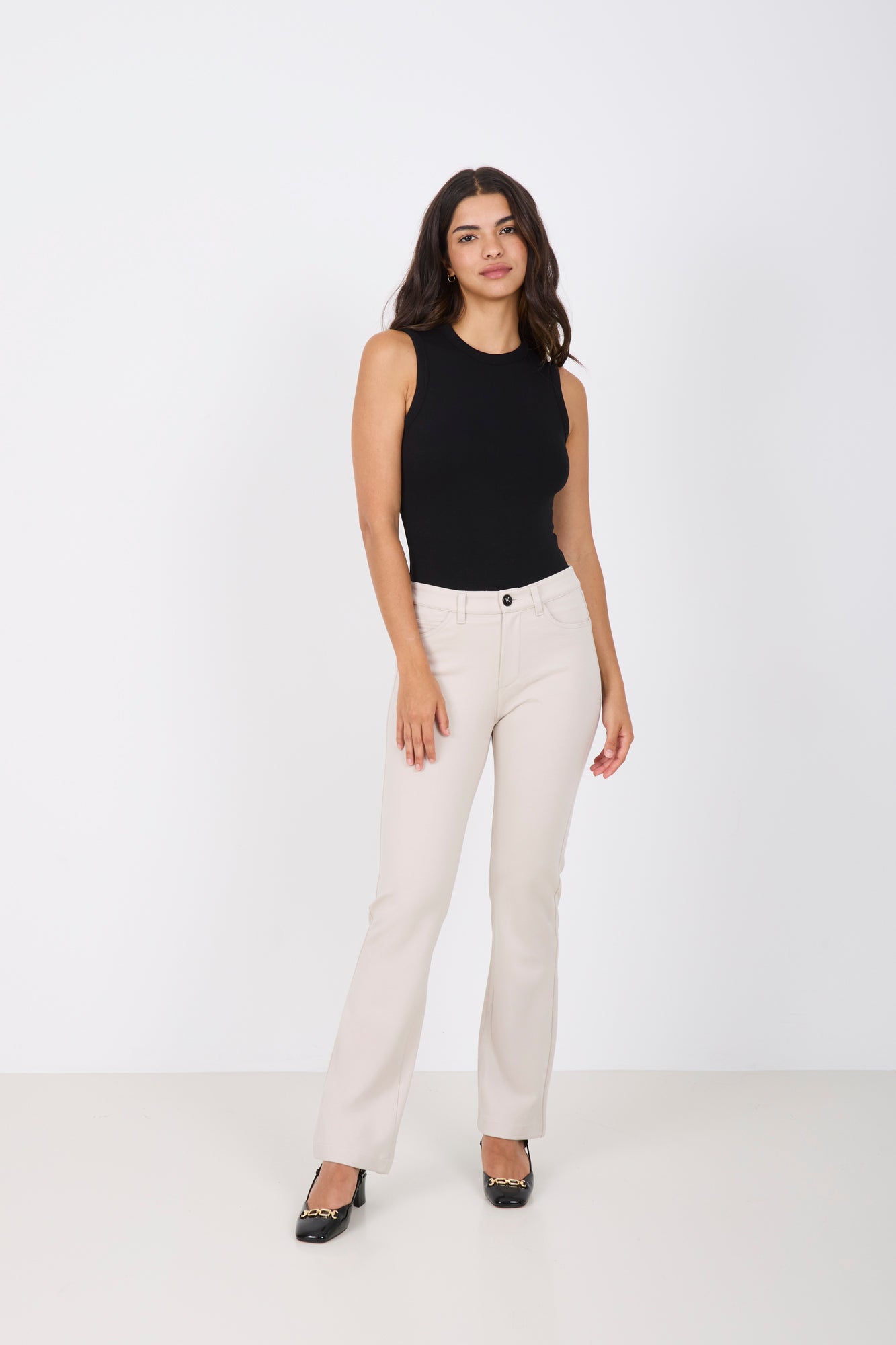 Pantalón de corte recto en color beige o marrón, acompañado de un detalle brillante y original de la marca en el bolsillo trasero. Pantalón perfecto para el día a día y a la vez, ayuda a aportar un toque original a tu look.