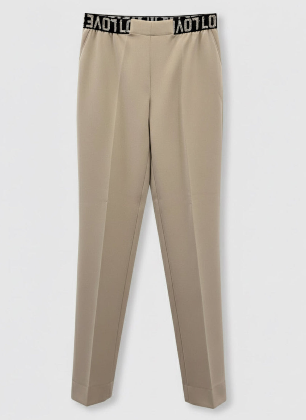 Pantalón de corte recto con goma estampada que se ajusta perfectamente a la cintura.